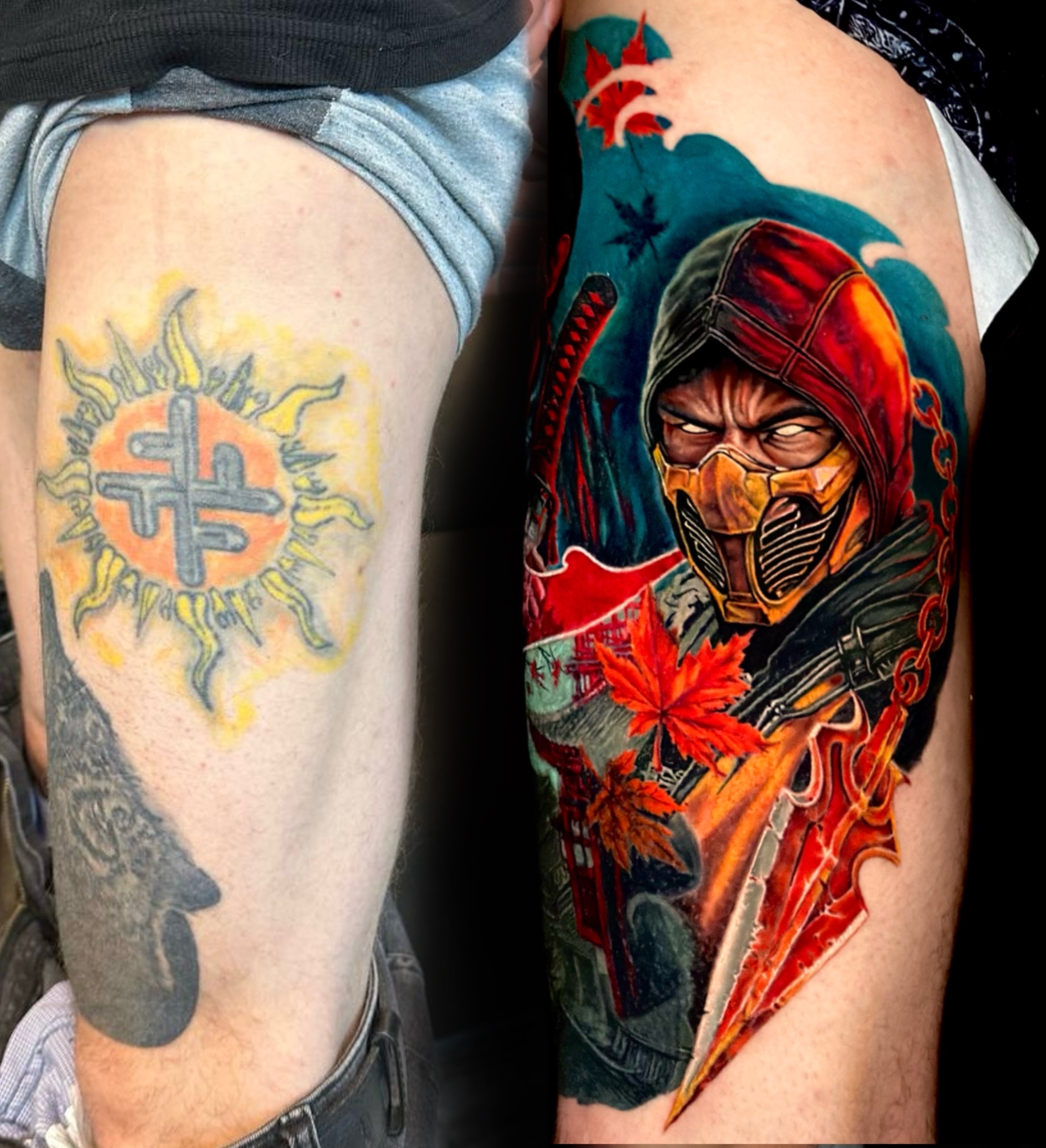 "После неудачного мастера думал, что тату уже не исправить. Но Александр сделал чудо! Перекрыл старую работу, подобрал плотные цвета, теперь тату выглядит идеально."